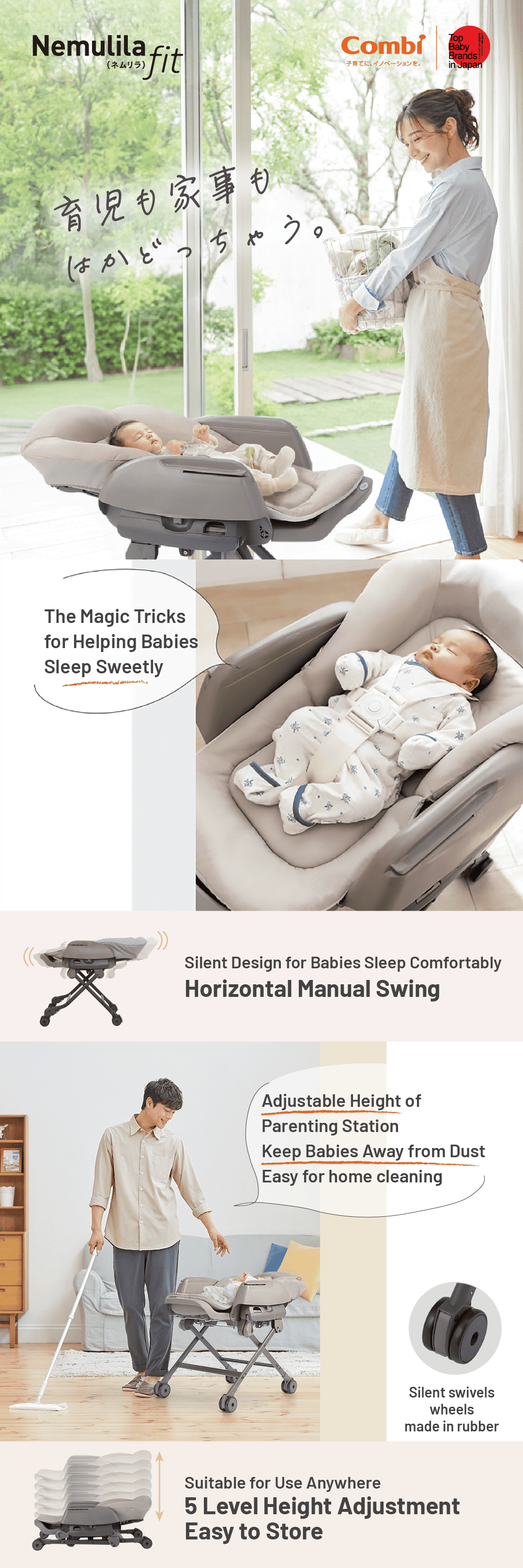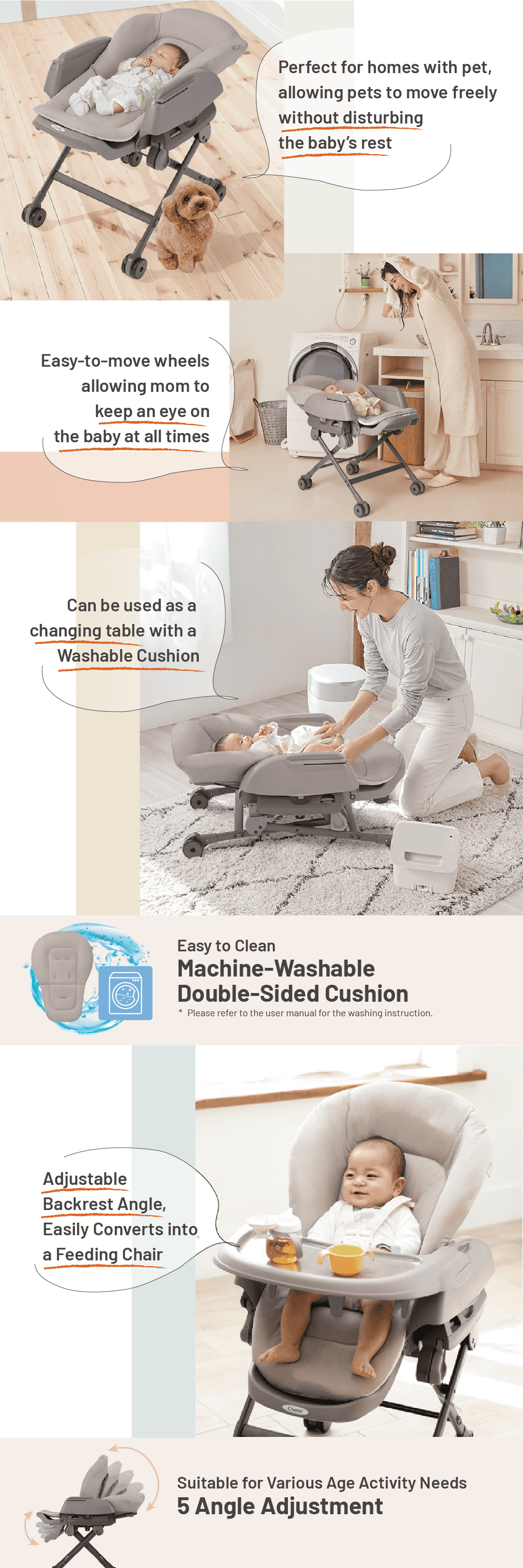 2. Adjustable toy bar takes care of baby’s different needs which will not interrupt sleeping.