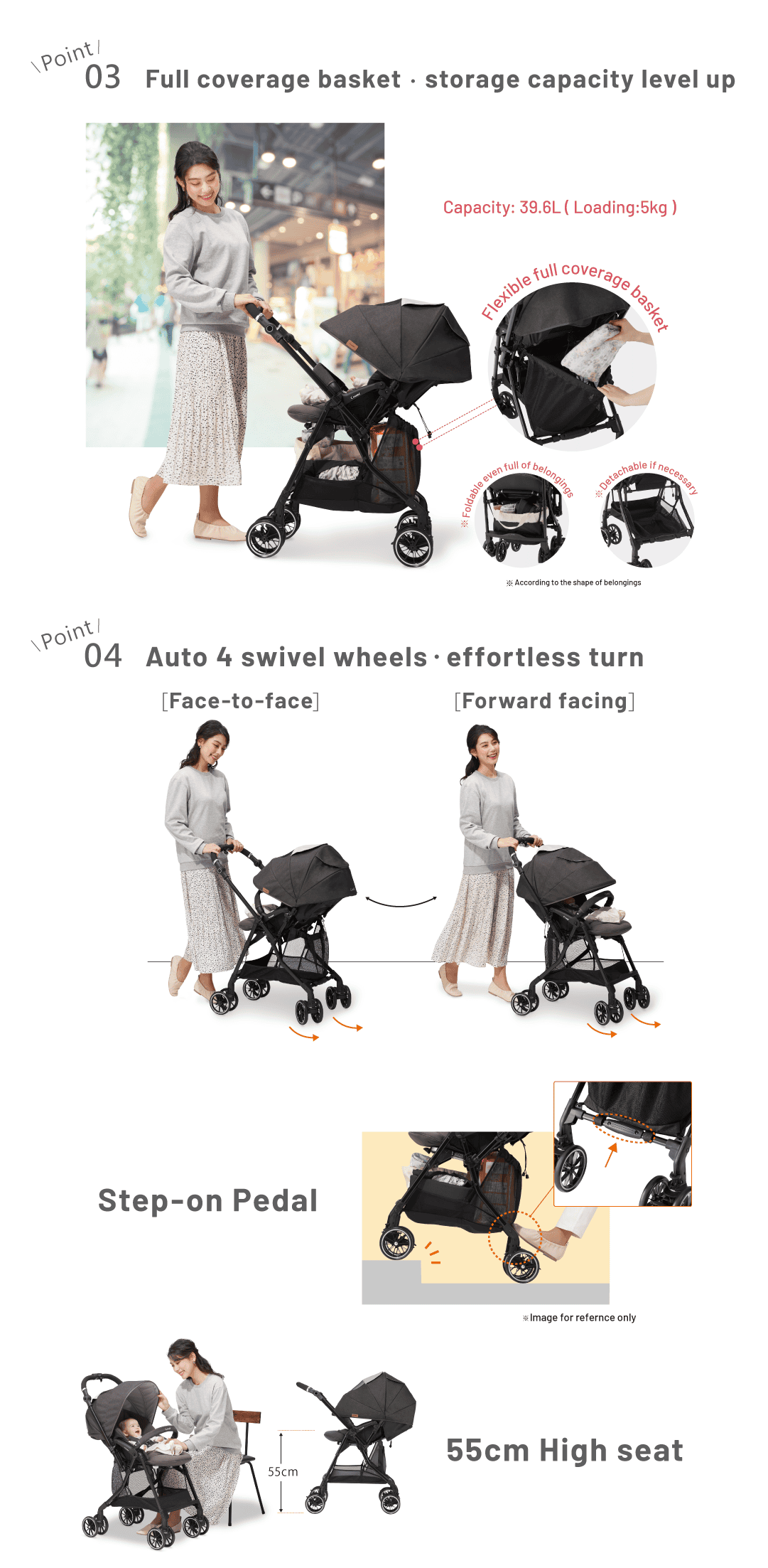 5. 55cm high seat keeps baby away from dust, heat, and CO2, making lifting easy.